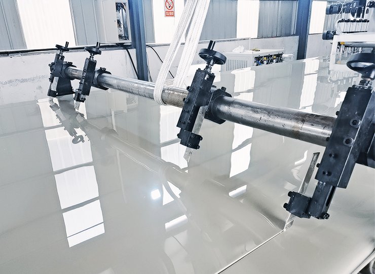 • Control preciso del espesor: el sistema de matriz en T + calandrado de tres rodillos garantiza la uniformidad de la hoja.